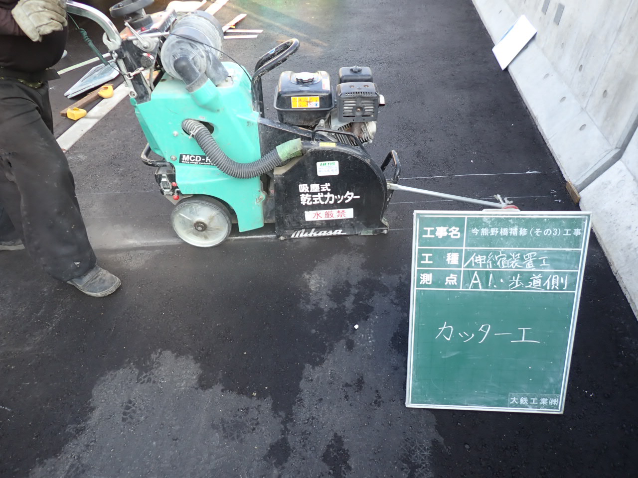 本工事では、SJ-M型シームレスジョイントの特性を踏まえ、調査段階からお客様と十分な打ち合わせを行い、当日の作業手順・人員配置・施工方法について事前に共有しました。施工当日は、朝礼・昼礼にて各時間帯の作業内容や進捗状況を確認し、工程の見える化を図ることで、円滑な施工を心がけました。 また、安全面では保護具の着用を徹底し、材料の取扱いにおいては正しい施工方法と作業環境の確認を行い、作業員の安全と品質確保に努めました。工事完了後は建設ソリューション課と連携し、書類対応まで含めて問題なく完了することができました。